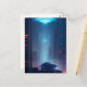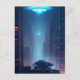 Futuristic sci-fi scene with UFOs hovering above a big city. AI created digital art.