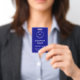 Simple Visitors Pass Company Name Logo White on Blue. A fully customisable design Add your logo by replacing the sample image with your own. Easily personalise the text. The font styles, colour and background Colours can also be changed via the Customise Further option.