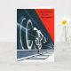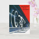 Sharp deco style train wheels on tracks.. stylised here into a retirement congratulations.. "congratulations on your retirement", "you have reached the end of the line!