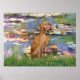 Water Lilies by Impressionist Claude Monet (1914), adapted to include a Vizsla.. One of many water lily paintings, this one has red or bright pink lilies in the pond. It sold at auction in 2008 for over 70 million.
