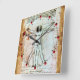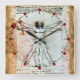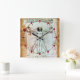 VITRUVIAN MAN Antique Parchment Red Ruby Gemstones Square Wall Clock