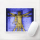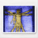 Leonardo Da Vinci's Vitruvian man in dramatic blue and gold colours.