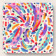 This is an abstract colourful design with vibrant hues in animal-like pattern (tiger or leopard).