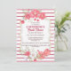 Beautiful soft deep pink meadow floral flowers with greenery are set against a white scallop shape inlay edged with faux gold. The design rests on a viva magenta coloured and white striped horizontal background and is ideal for a "magenta, white and gold" or "country floral themed" bridal shower, special birthday event or wedding. Personalise the wording to make sure it suits your special celebration.