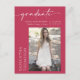 Yay! She finally graduated from school either from high school, college/university, tech school, or a graduate program so now it's time to inform family and friends that she did it! Celebrate one of her life's precious moments and send out this graduation announcement postcard. This postcard features elegant modern minimalist graduation announcement featuring a beautiful calligraphy script on a viva magenta background and the graduate's photo. Just customise and replace the text and photo in the personalisation box.