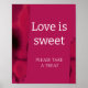 Modern, Minimalist Viva Magenta love is sweet bridal shower Poster. Shades of magenta, purple and red colour palette. Red and white colour contrast combination.