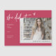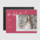 Yay! She finally graduated from school either from high school, college/university, or a graduate program so now is the time to inform family and friends that she did it! Celebrate one of her life's precious moments and send out this graduation announcement magnetic card. This magnet features a beautiful handwritten brush script with heart on a viva magenta background and the graduate's photo in a rectangle frame. Just customise and replace the text and photos in the personalisation box.