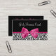 A trendy black and white leopard print boutique business card with a vivacious hot pink ribbon tied into a girly bow. Personalise this cute animal pattern design by adding the name of your fashion boutique. Flat printed image, not actual bow.
