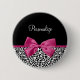 A trendy black and white leopard print button with a vivacious dark pink ribbon tied into a cute girly bow. Personalise this chic and stylish animal pattern name tag by adding the name of your teen girl. Flat printed image, not actual ribbon.