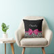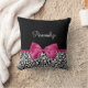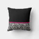 A trendy black and white leopard print throw pillow with a vivacious dark pink ribbon tied into a cute girly bow. Personalise this chic and stylish animal pattern design by adding the name of your teen girl. Flat printed image, not actual ribbon.