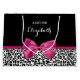 A trendy black and white leopard print large size gift bag with a vivacious dark pink ribbon tied into a cute girly bow. Personalise this chic and stylish animal pattern design by adding the name of your teen girl. Flat printed image, not actual ribbon.