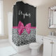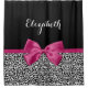 A trendy black and white leopard print shower curtain with a vivacious dark pink ribbon tied into a cute girly bow. Personalise this chic and stylish animal pattern design by adding the name of your teen girl. Flat printed image, not actual ribbon.
