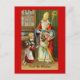 Classic vintage French image of St. Nicolas delivering Christmas gifts to two small children. The children look.