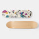 Unleash your creativity with this vivid abstract geometric skate deck. Featuring bold lines, energetic shapes, and a vibrant palette of magenta, teal, mustard, and black, this design blends retro and contemporary styles seamlessly. Perfect for skaters seeking a unique and eye-catching artistic statement on wheels.