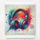 Colourful headphones depicted in a vivid, artistic style with an abstract splatter background evoking music and creativity.