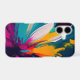 This dynamic abstract artwork bursts with color, movement, and expressive emotion. Bold brushstrokes radiate outward from a dark central core, forming a flower-like explosion of teal, magenta, deep navy, white, and vibrant golden yellow. The composition feels alive and spontaneous, capturing a moment of pure creative energy where color and motion collide.
