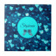 A pretty gift for someone special, this features a two-tone blue circle with a blue bow inside and text that you can personalise against a background of vivid hearts of different shades of blue.