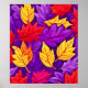 Vivid Cartoon Leaves: Purple, Yellow, Red Poster