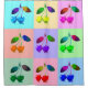 Colourful Cherries: blue, light blue, orange, yellow, pink, magenta, purple, violet, light green, leaves green, olive green - created in Pop Art style. Light, optimistic Design. The Role of Optimism in Design - to help create a culture of optimism.