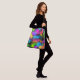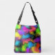 A dreamy abstract in vivid shades of yellow, green, pink, purple, blue, turquoise, orange, black and more adorn this fun bag.