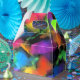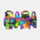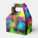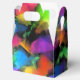 A dreamy abstract in vivid shades of yellow, green, pink, purple, blue, turquoise, orange, black and more adorn these fun favour boxes.