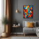 This dynamic and vivid artwork features an explosion of geometric forms, interplaying in a vibrant cubist style. The artwork, created using AI, showcases bold, intersecting shapes and a rich colour palette dominated by warm reds, oranges, and cool blues. These sharp lines and contrasting hues bring a sense of movement and energy, making this piece a perfect statement for any modern space.