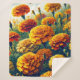 A summer throw sherpa fleece blanket depicting vivid colourful marigolds for flower lovers. Great gift idea for gardeners and flower lovers. This vibrant art design makes an attractive home decor accent piece for any room.