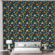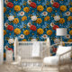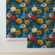 Vivid Maximalist Yellow and Cream on Blue Floral Wallpaper