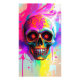 A striking neon sugar skull surrounded by explosive splashes of abstract paint in a vibrant spectrum of colors. The detailed skull design blends seamlessly with the energetic background, creating a bold and eye-catching piece perfect for any modern space. A must-have for lovers of psychedelic and colorful art.