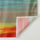 Tapestry in a semi-abstract sunset over the ocean, in psychedelic colours of fiery red and orange, with a deep blue ocean