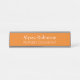 This stylish name plate is easy to personalise using the online personalisation template before ordering. There are text fields for a name and a job title (or a name and a department/team if you prefer). Should you wish to make advanced adjustments such as changing the vivid orange background to a company colour, please click on the "Edit Using Design Tool" option to "Customise further". The name plate is available in a choice of two styles (as a desk name plate or as a door name plate) and a choice of colour finishes and sizes.
