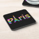 A design as fun as Paris itself. The text Paris in a vivid array of a rainbow of colours with the "A" in Paris an outline of the Eiffel Tower.