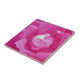 This decorative ceramic tile features a macro photo of an offset, vivid pink rose bloom.