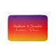 This colourful, plush bath mat with name or names is a great gift for a wedding, commitment ceremony, or housewarming. Background is a vivid rainbow of purple, orange, red, and yellow. Two lines of text are yellow. Perfect for LGBTQ, gay or straight couple. All Rights Reserved © 2015 Alan & Marcia Socolik.