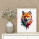 Vivid Red Fox Watercolor Splash Wall Art