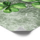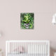 A vivid, green St. Patrick’s Day illustration featuring a skull wearing a shamrock-adorned hat with a 4 leaf clover in the mouth.