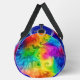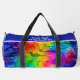This energetic Gear bag showcases a vivid spectrum swirl design, blending blues, greens, yellows, oranges, reds, and purples in a flowing, abstract manner. It’s a distinctive Kit bag and a cheerful Weekender ready for any adventure.