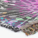 A quality printed throw has its advantages. This is a much finer weave throw than its loopier cousins, and though lighter, it is worth the investment for custom room accessorizing. The back is much prettier than the typical brown, and the fringe on the long sides very vivid, the selvage nicely done. Before photographing, I washed the throw in cold water, delicate, with a thicker woven throw the same size. On tumble dry low, this throw was dry in half the time as the other. This is a very practical quality if you use throws for furniture covers or to wrap up in frequently. The sleekness of the fabric makes it a great layer for accenting or protecting without the feeling of sitting on too much stuff. Perfect for napping or when you feel a light chill coming on. The color printing is beautiful and on this fabric, matched the design and color of my Photoshop image. This is an advantage for blending room fabrics and colors. The fringe on the short sides prints the colors from the design image and therefore varies from the side fringe. I streaked a white fractal line through the plaid pattern to give the illusion of weaving. This printed as crisp as an illusory thread, and put some white in the short side fringe, showing another advantage of print vs loomed- for artistic purposes, line lines, detail, and color integrity can be planned and preserved. My loomed throws have color limitations and more of a needlepoint texture. Print throws reproduce an exact image. The throw felt a little stiff straight out of the package, but this went away in the first delicate wash. Of course I searched the wash water for ink or bleeding and there was none.