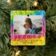 Vivid Tie Dye Merry Christmas Script Family Photo Ceramic Ornament