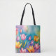 Watercolor art meets functional design—soft yet sturdy tote with blooming tulips you'll adore.