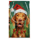 Colourful and joyful Christmas design with a Vizsla wearing a Santa hat.