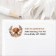 The left side of these return address labels feature a portrait of a beautiful red Vizsla dog. The image is enclosed within a pretty autumn floral and leaf wreath in tones of brown, tan, and cream. Your custom text is in black and gold brown at the right.