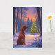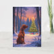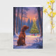 Vizsla Gazing at Christmas Tree in Snowy Forest Card