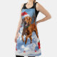 A graceful Vizsla runs happily through the snowy winter scene, wearing a festive red Christmas hat. This charming design highlights the breed’s sleek coat, athletic build, and affectionate personality while capturing the warmth and joy of the holiday season. A delightful winter moment full of festive cheer.