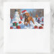 Vizsla Running in Snow with Christmas Hat Rectangular Sticker