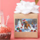 A graceful Vizsla runs happily through the snowy winter scene, wearing a festive red Christmas hat. This charming design highlights the breed’s sleek coat, athletic build, and affectionate personality while capturing the warmth and joy of the holiday season. A delightful winter moment full of festive cheer.