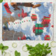 Vizsla Running in Snow with Christmas Hat Tea Towel