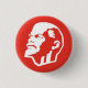 This badge is an artistic design of Vladimir Lenin's head. It features a blocky outline of his head in white, whilst the background is coloured in red.