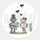 Unique artwork by vol25. This happy robot couple has wedding bells in they're near future.. They make a perfect wedding or anniversary gift. :)