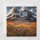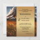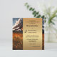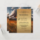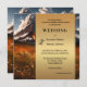 A unique autumn wedding invitation featuring a fantasy landscape scene with colourful fall flowers and an active volcano. An elegant gold panel is used behind the texts. On the back is an optional QR code with RSVP information. (you can easily delete this if you do not need it). Beautiful for an adventurous couple.